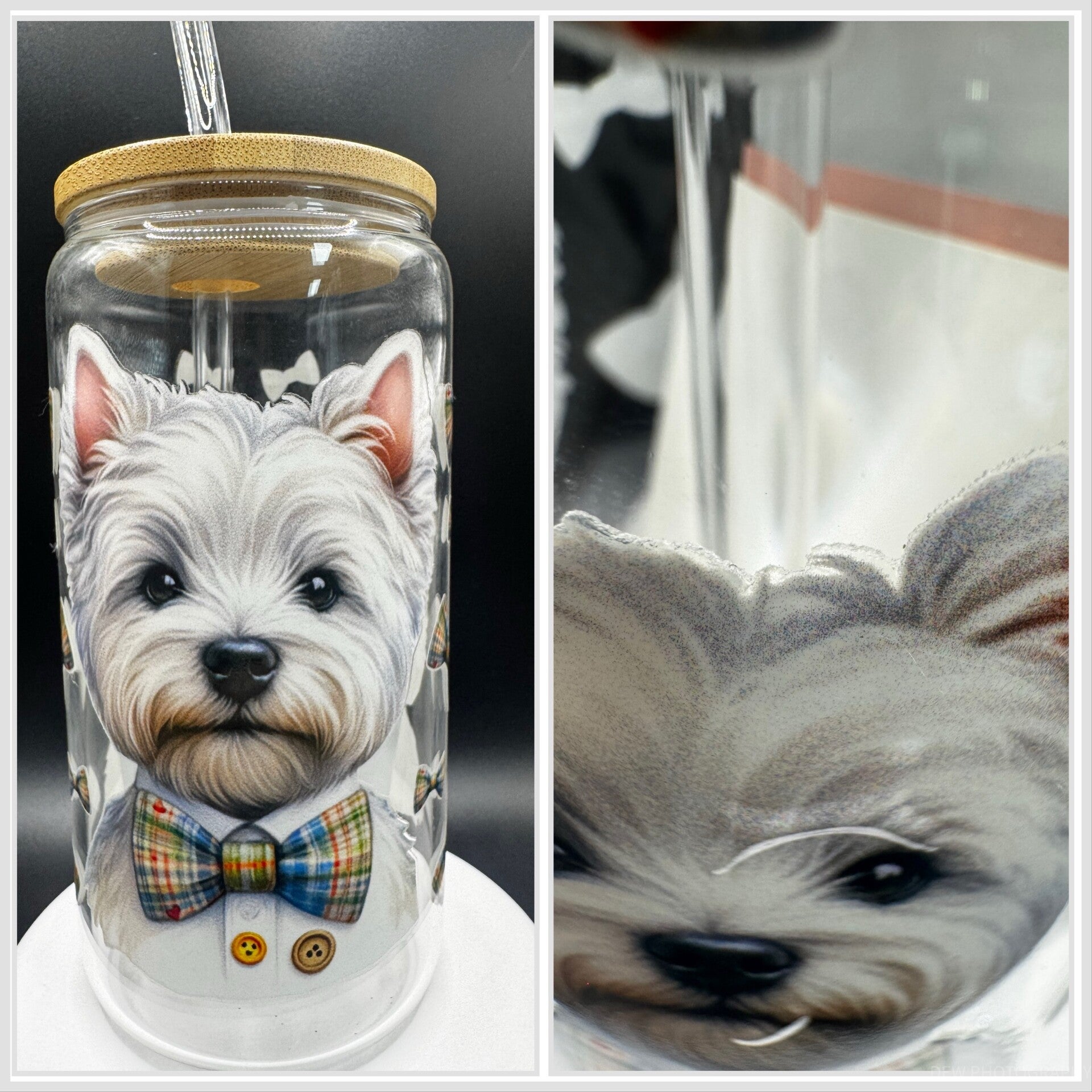 Seconds/Imperfect - 16oz Glass Tumbler with small air bubbles and split in design (White Dog)