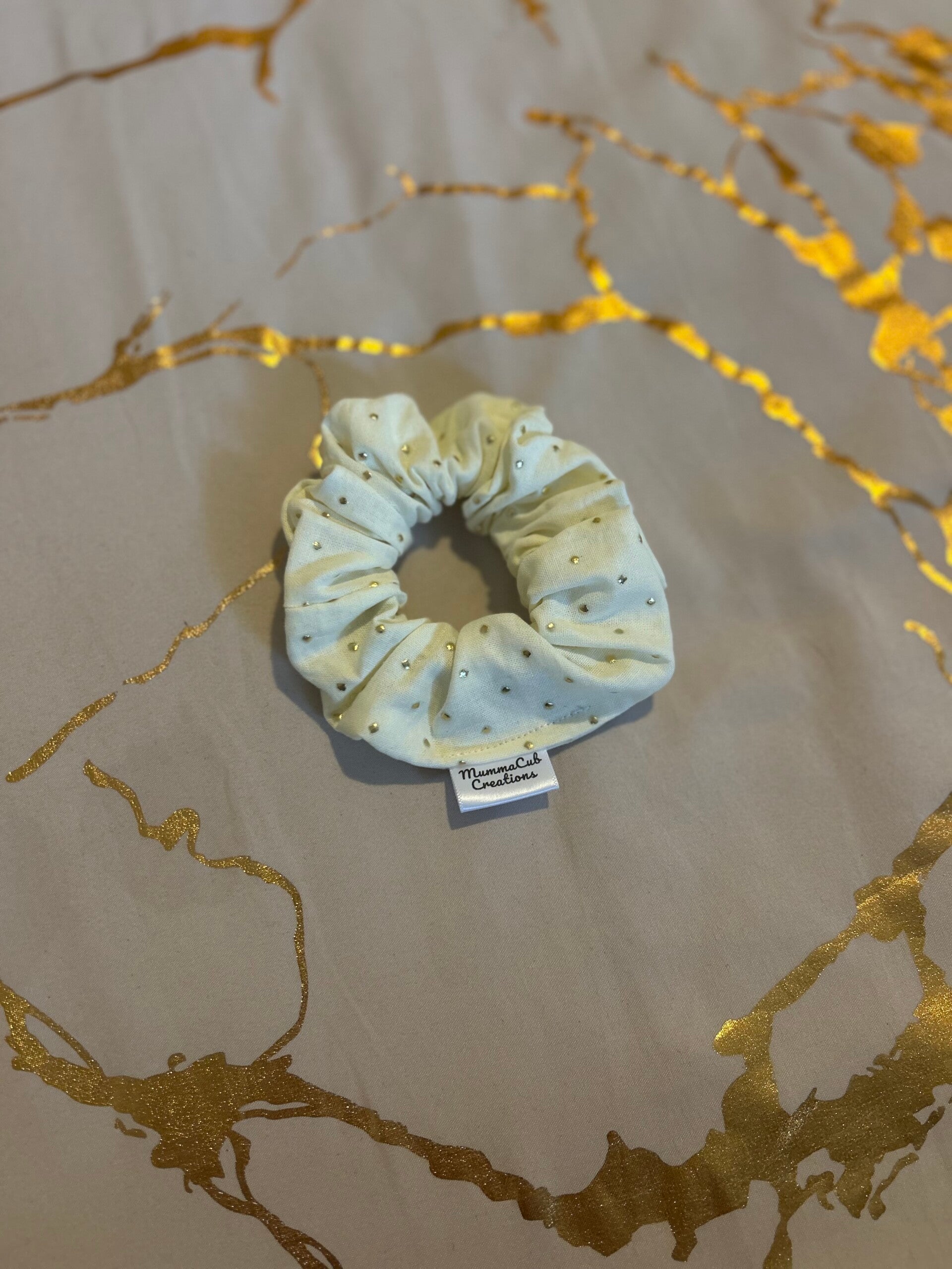 Small Cream with Gold Diamantes Scrunchie