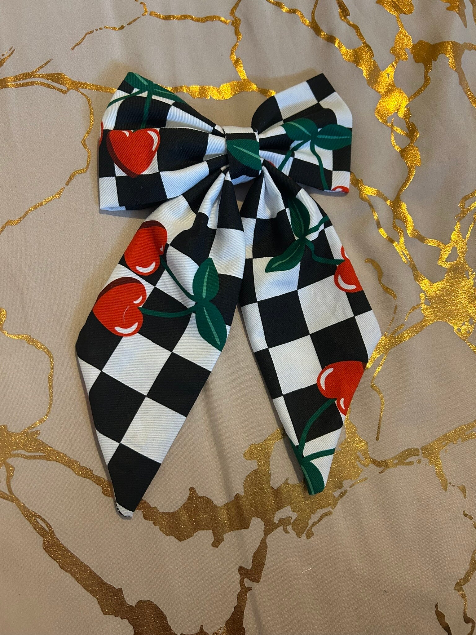 Large Checkered Cherries Hair Bow